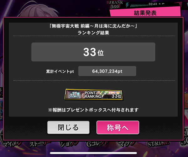 ちょっと前の話ですが、帝幻+銃兎のARBイベ33位でした✌